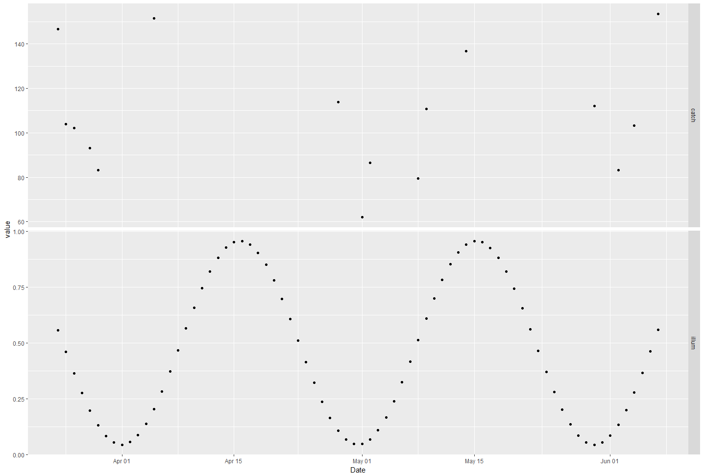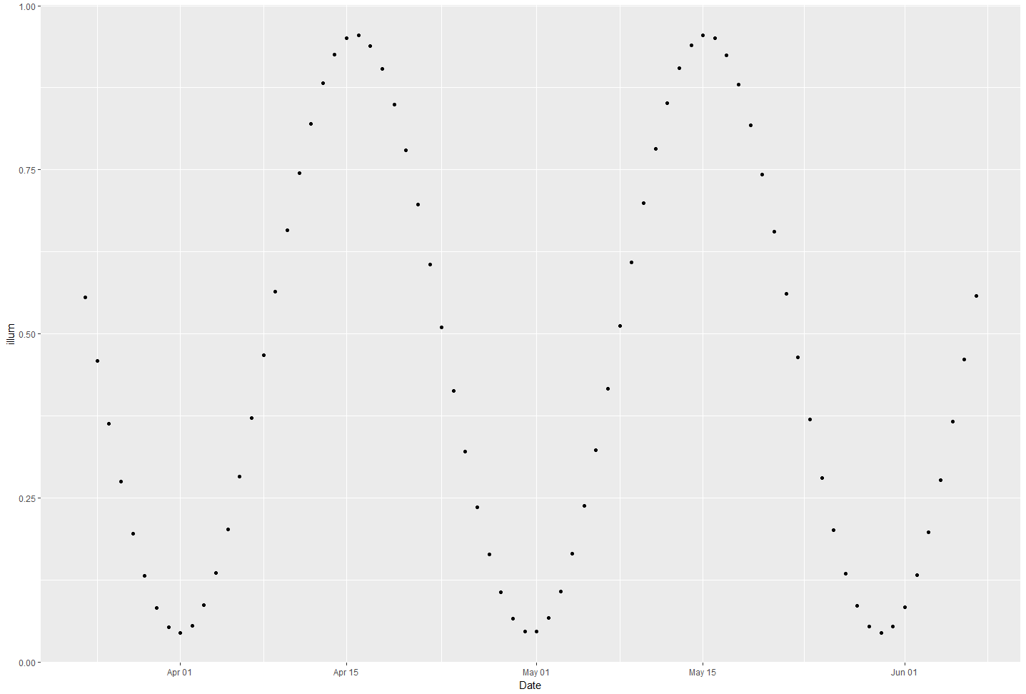 round(lunar_day, 0)这工作正常,大约29天,从新月开始。下面给出了一个tidyverse代码: