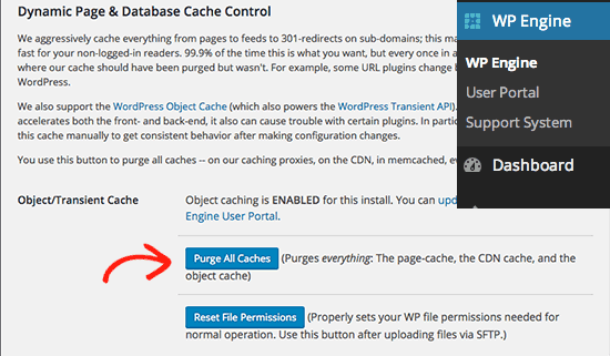如果您无法立即注意到更改生效,那么您可以轻松地从您的WPEngine管理区域清除WordPress缓存。