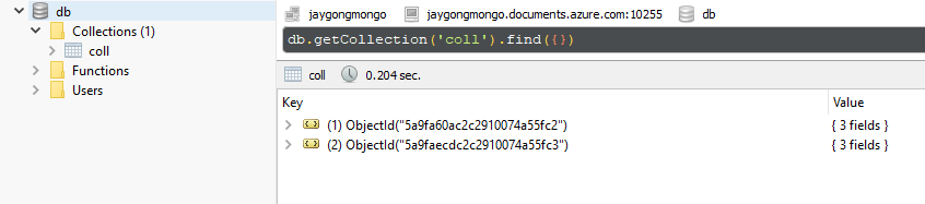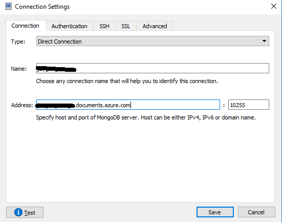 当我访问Azure cosmos db(mongodb)时,我没有复制您的问题。请参考我的连接设置。