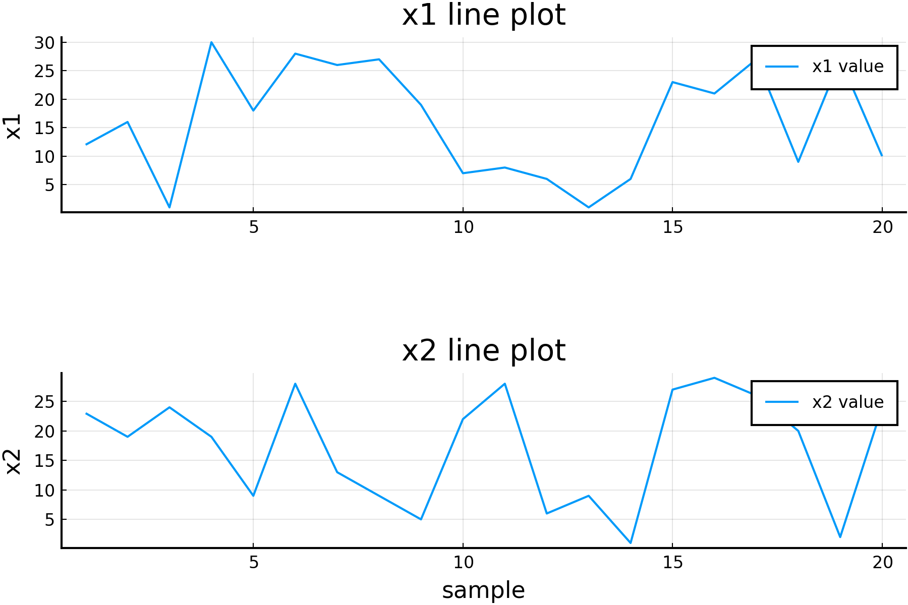 x2 = rand(1:30, 20);