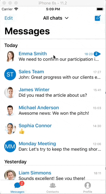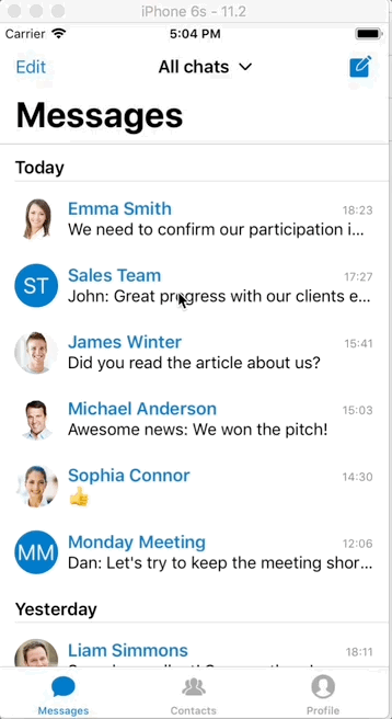 definesPresentationContext = true当用户在表视图中点击聊天时,应用程序会使用另一个包含聊天消息的表视图推送一个新的视图控制器。它的工作原理是: