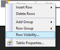您可以为行添加一个可见性表达式。您也可以在组级别上这样做。右击并转到行可见性。