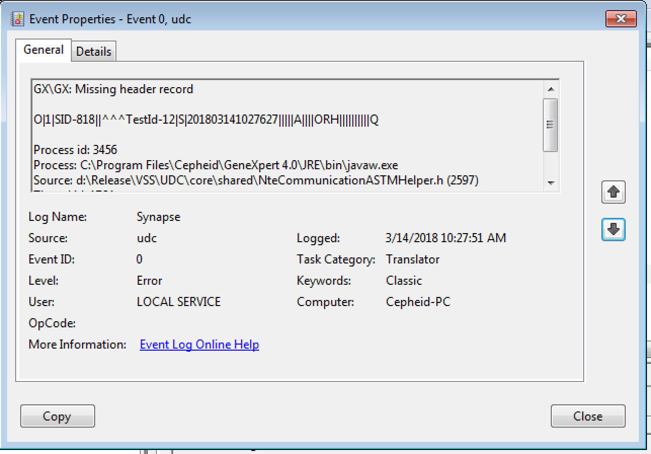 好像起作用了。但是现在windows事件显示了为什么我的记录订单没有出现在GeneXpert DX主机记录列表中的错误。头记录已首先发送。