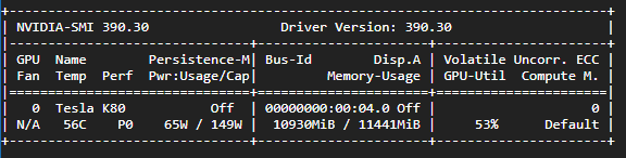 我在Google上安装了一个实例,其规格如下:4个vCPU,15 GB内存,1个Tesla K80 GPU