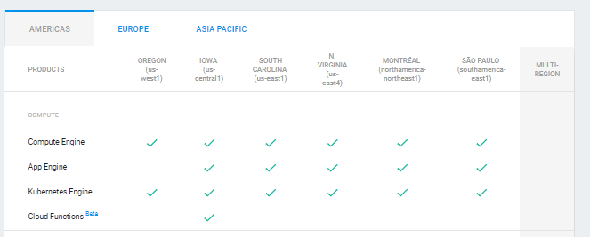 正如图片中所显示的那样,现在GCP中有3个多区域可用。