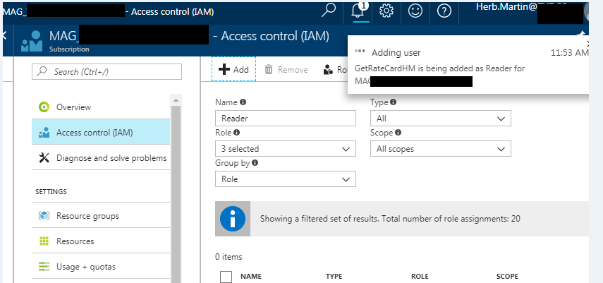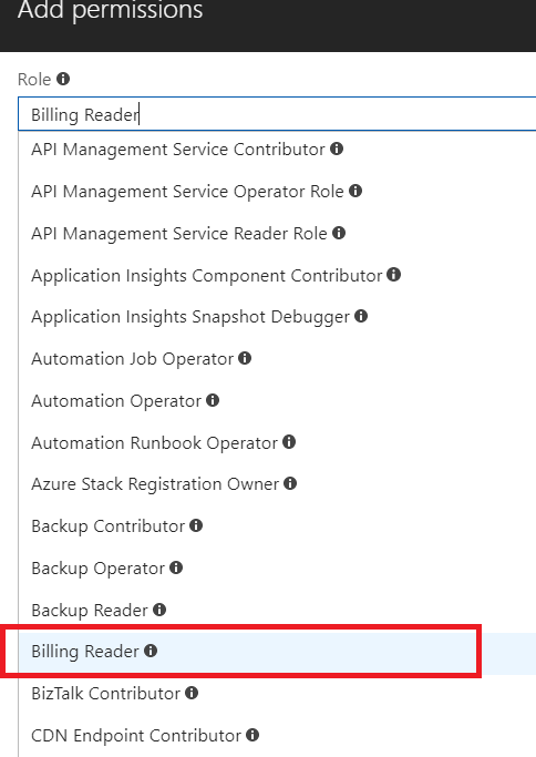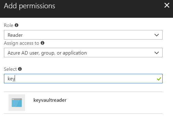 在“访问控制”刀片下,单击“添加”。在角色下选择Reader(以防您只需要获得信息而不作任何更改)。在“选择”下,您可以查找客户端应用程序名称(与客户端ID相关联的应用程序名称),还可以复制客户端ID并粘贴到此字段。
