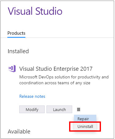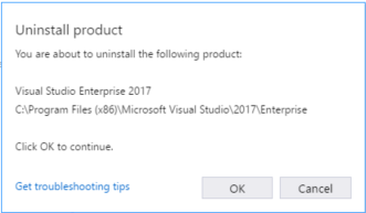 若要从计算机中完全删除Visual 2017的所有安装以及Visual安装程序,请将其从Apps &Feature中卸载。