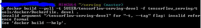 docker build --pull -t $USER/tensorflow-serving-devel -f tensorflow_serving/tools/docker/Dockerfile.devel .编辑: