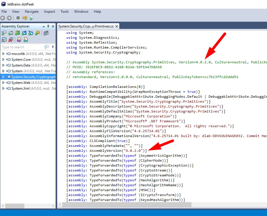 System.BadImageFormatException: Could not load file or assembly 'System.Security.Cryptography.Primitives, Version=4.1.0.0, Culture=neutral, PublicKeyToken=b03f5f7f11d50a3a'. An attempt was made to load a program with an incorrect format.