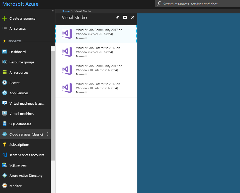 我看到我可以在Azure中创建一个Visual,但是我没有看到像我这样的VS Pro版本的任何选项。我只看到了预构建VM的Community和Enterprise。