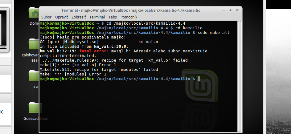 在包含在km_val.c:30:0: km_val.h:32:19:致命错误: mysql.h: Adresár súbor neexistuje编译终止的文件中。规则:97:目标' km_val.o‘失败的配方1:* km_val.o错误1 Makefile:511:目标’模块‘失败的配方:*模块错误1