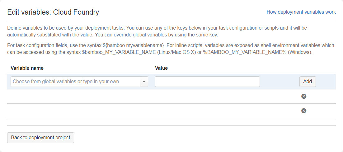 String myVariable = "${bamboo.myVariable}";竹部署变量配置屏幕