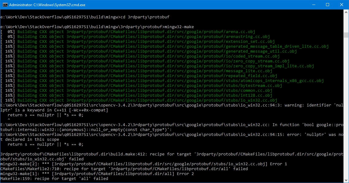 按照构建步骤,我得到了与下面的图像相同的错误(我在protobuf的dir中直接启动了mingw32 32-make,以跳过它之前构建的所有其他东西):