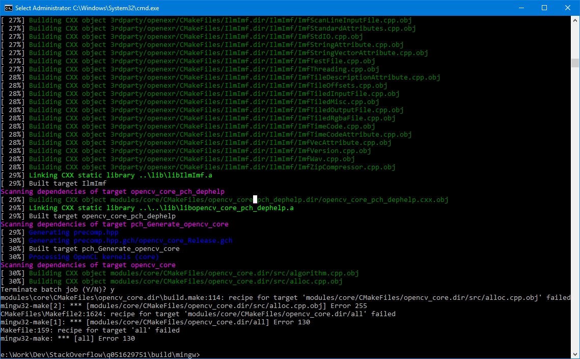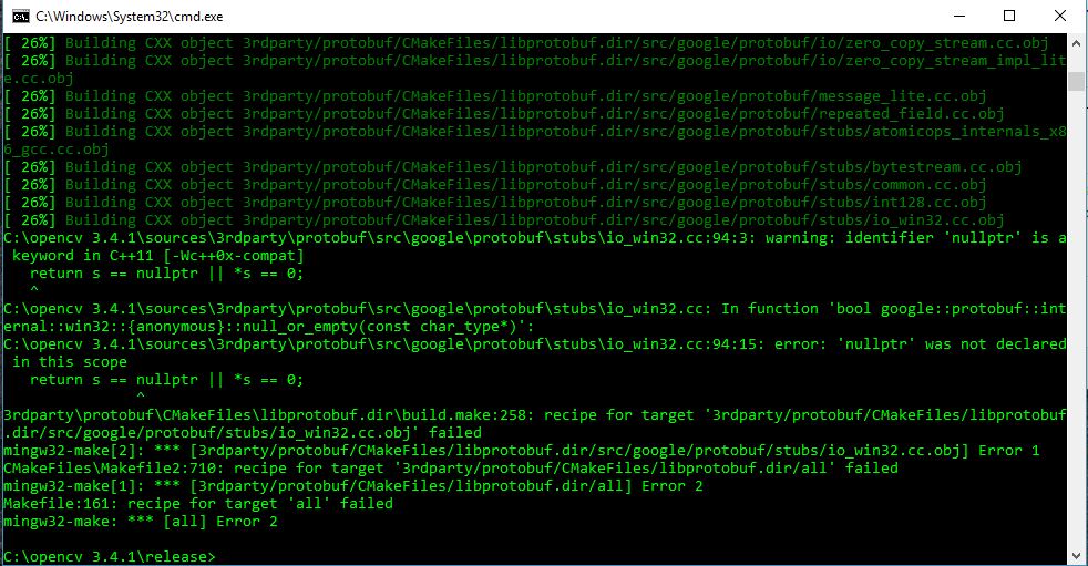 Note:我的答案更多地是基于[SO]:cmd中的openCV mingw-32错误 (发布的.pdf中提到的工具版本)