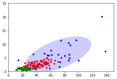 # Plot an ellipse to show the Gaussian component