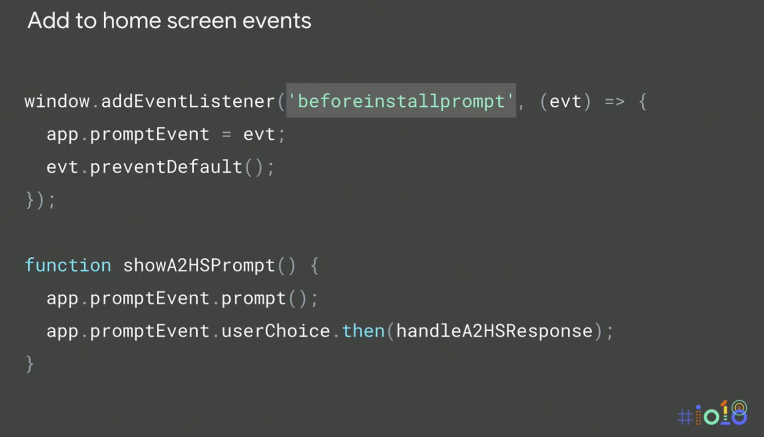 从Chrome 68开始,您将需要处理“安装前提示”事件,并在用户手势上调用prompt()来获得添加到主屏幕(A2HS),这不会自动发生。