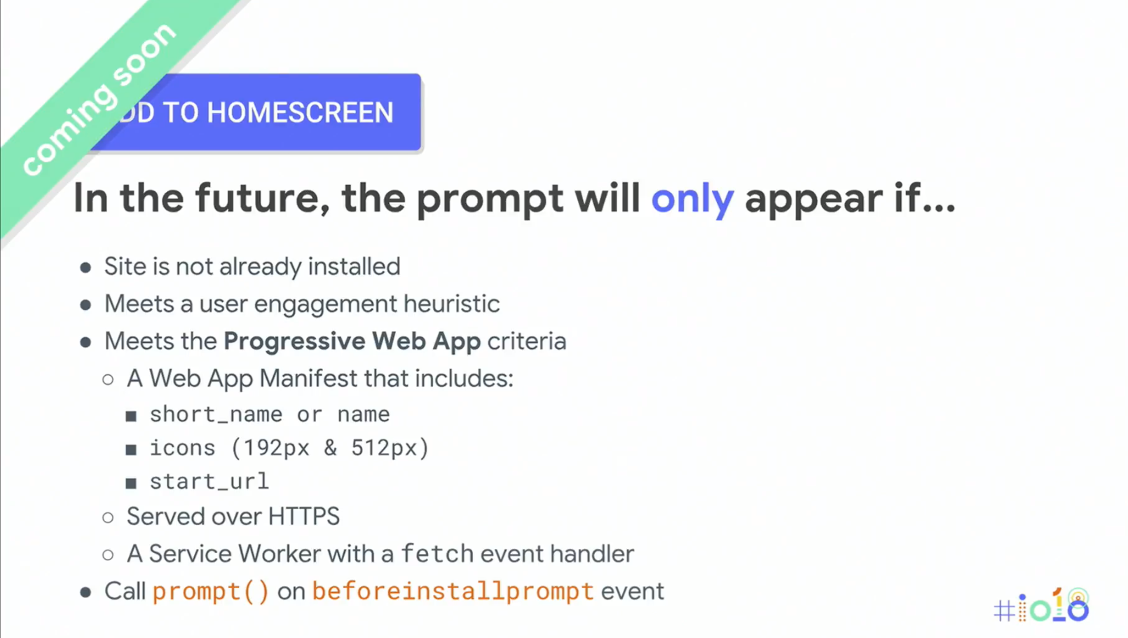 服务于HTTPS (使用服务工作者的要求)。满足网站接触启发定义的Chrome (这是定期改变)。