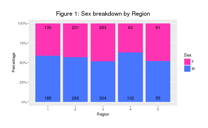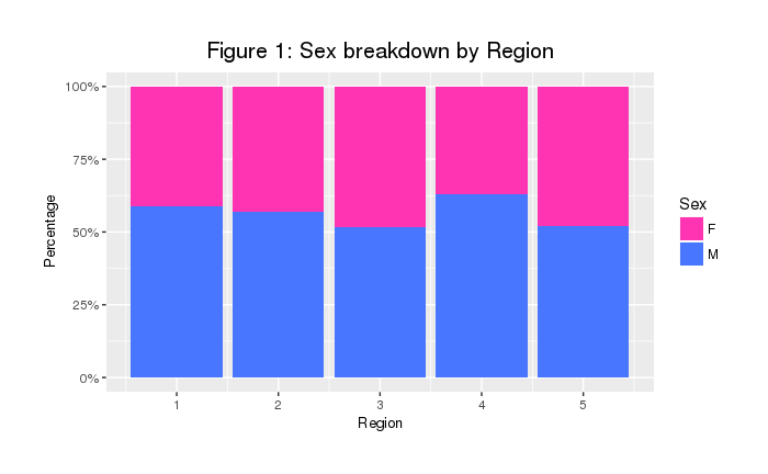 ggtitle("Figure 1: Sex breakdown by Region") +