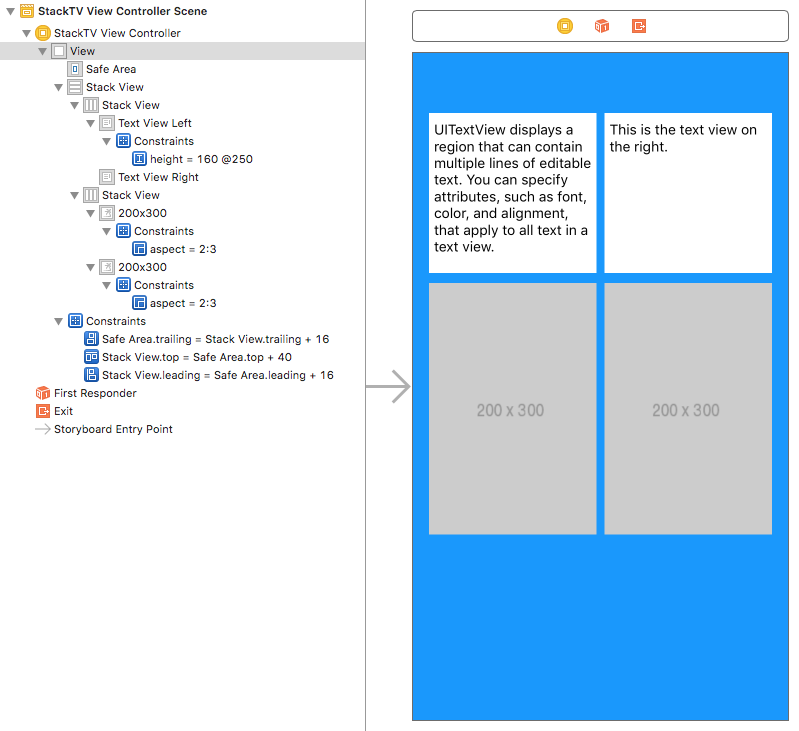 第一个UIStackView包含两个UITextView,而第二个包含两个UIImageView。