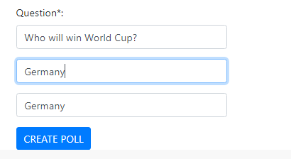 单击Create按钮后,控制台显示为:{“问题”:“谁将赢得世界杯?”、"option1":“德国”、"option2":“德国”}