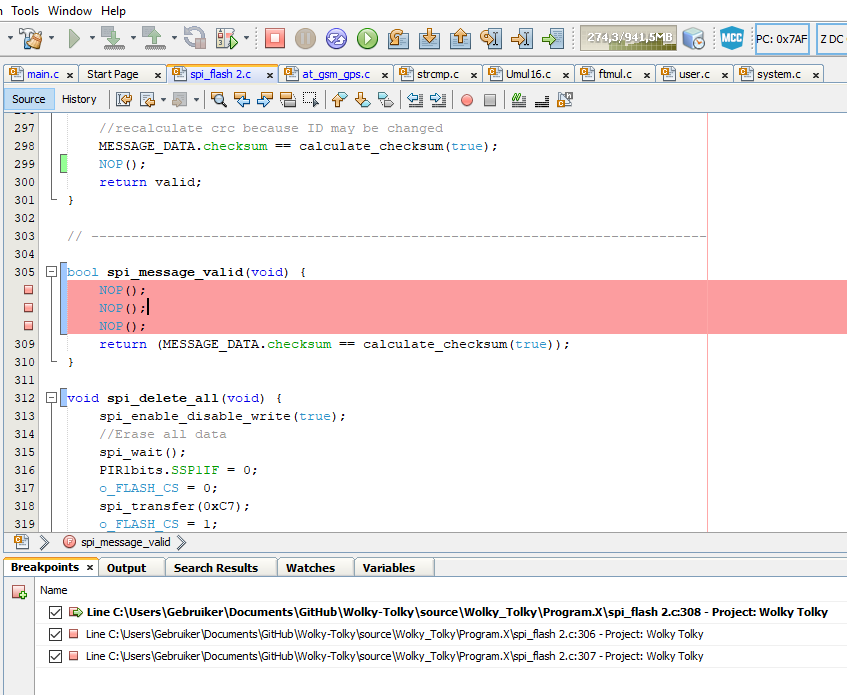 我在MPLAB X中有一个项目。当我使用一个行断点时,它在调试我的项目时根本不会在正确的行上中断。