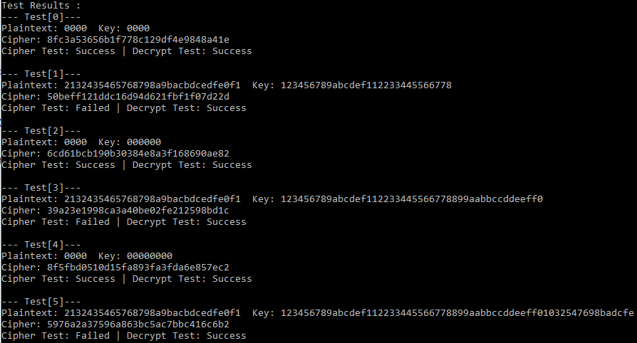正如您所看到的,当纯文本和密钥由零字节组成时,它通过了->密码文本和解密文本测试。