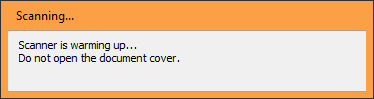 扫描仪在扫描图像之前必须预热;扫描时它会显示以下弹出内容: