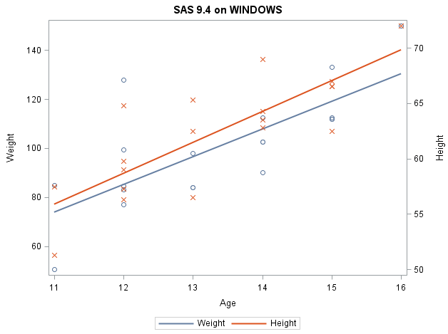 reg x=age y=height / legendlabel='Height' y2axis;