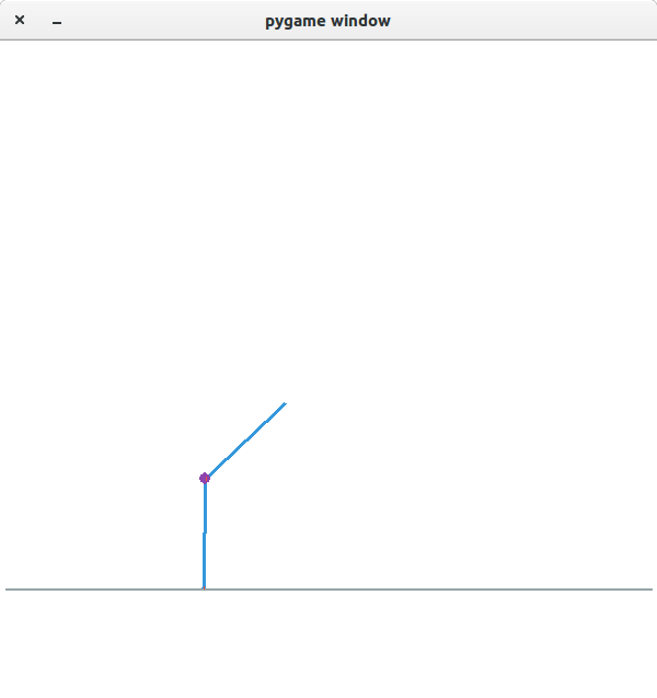 sim.main()然而,这种行为有些奇怪。当您按上/下键时,这会动态地设置SimpleMotor连接的速率,从而使两个盒子在它们共同的“伺服关节”处枢轴,例如: