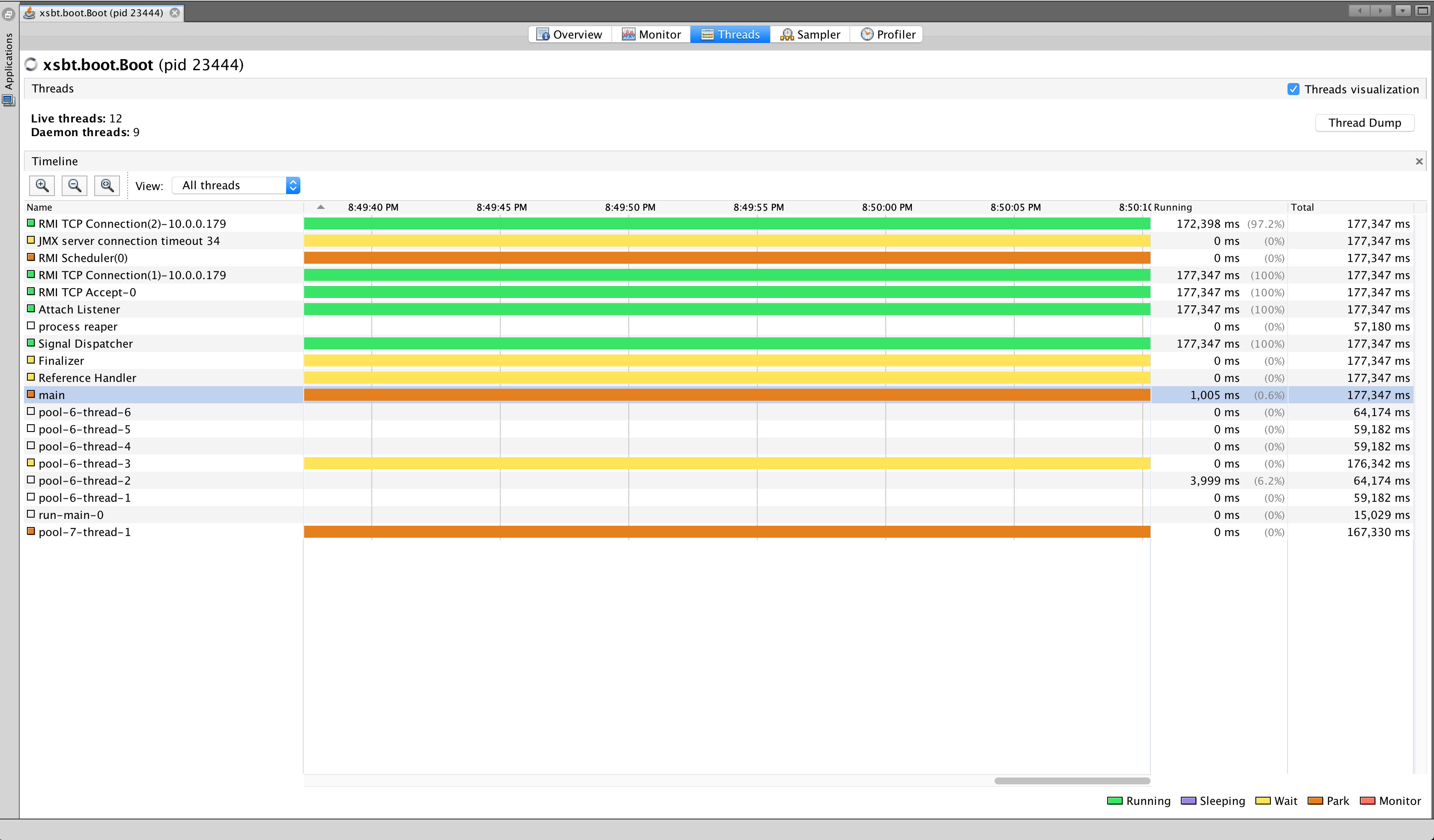 <hangs>这是JVisualVM线程监视器,