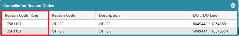 header: "Reason Code",