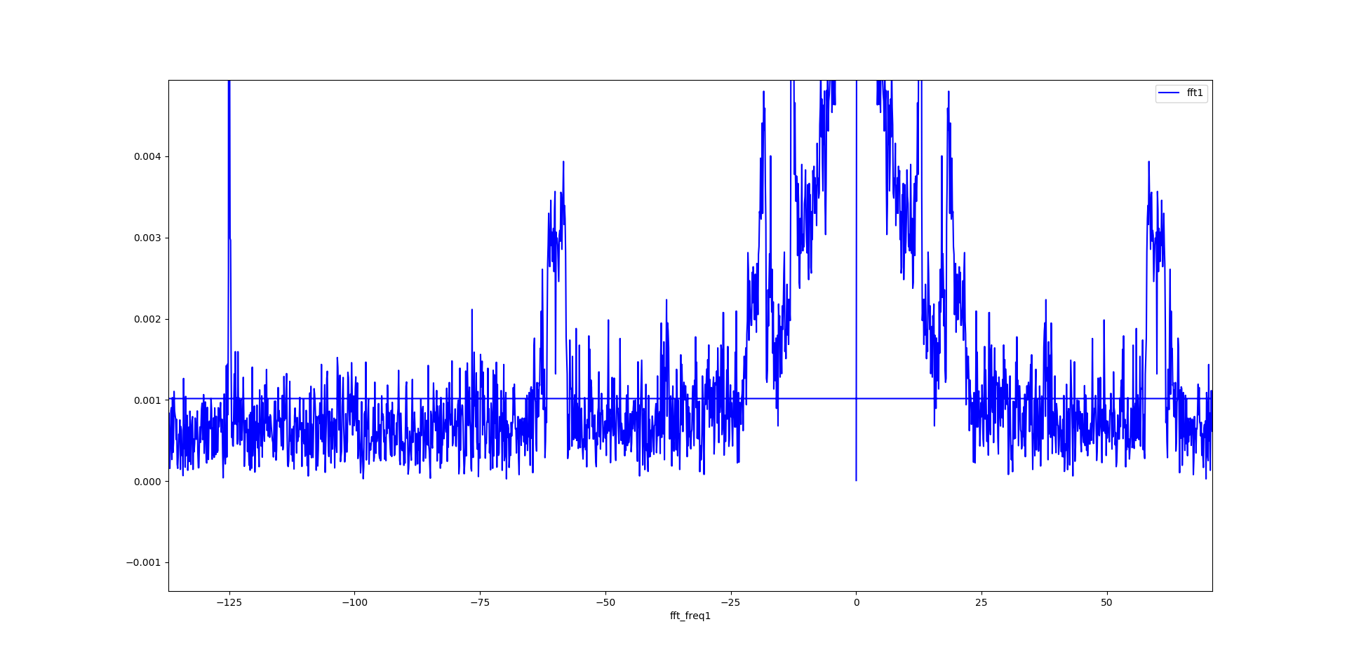 这是我的实验信号的fft图(放大)。您可以看到水平线(y =~ 0.0015)和垂直线(在x = 0处)。