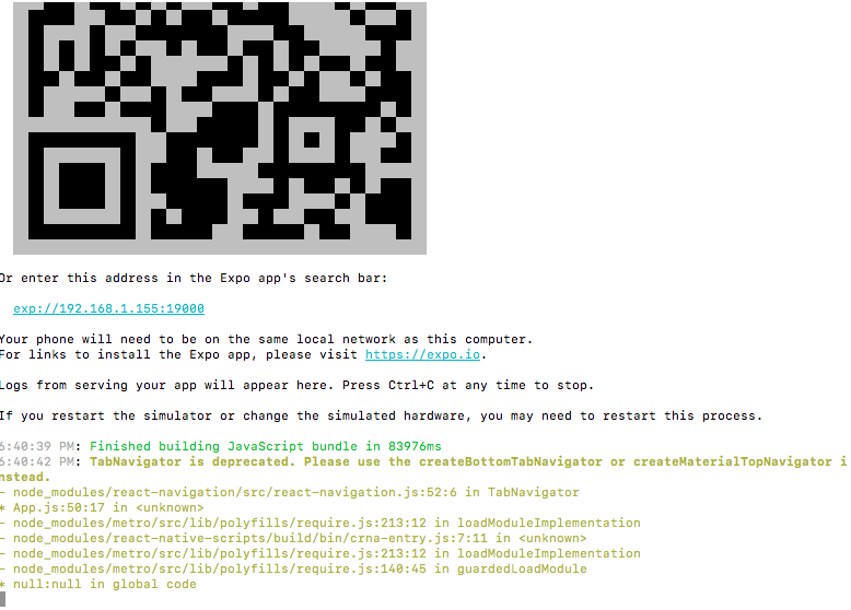 下面是终端输出,其中有一条指示不推荐使用TabNavigator的消息: