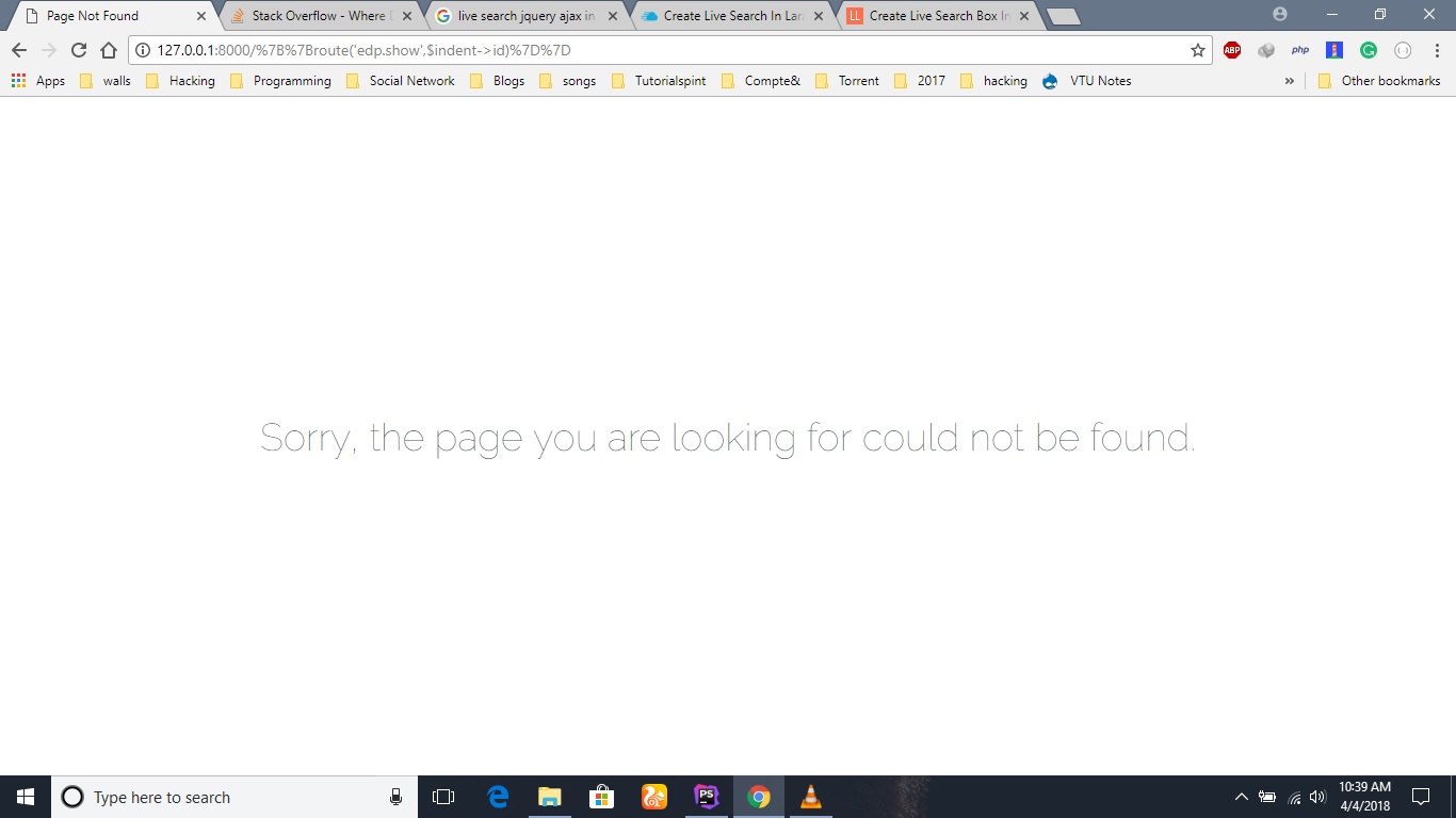 我在索引页面中有一个搜索选项,当我搜索一个名字时,它过滤了一些细节,当我点击datatable中的显示图标时,它应该重定向到show.index页面,但是它抛出了一个类似于this.but的错误,它在索引页面上工作,而不是在索引页面中搜索。