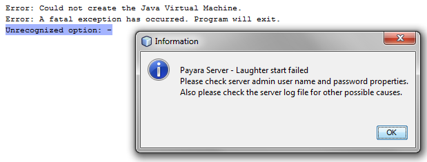 我还建议使用最新版本的Payara,但我认为导致这里错误的可能是一个有空间的JVM选项(例如,- Xmx而不是-Xmx)。