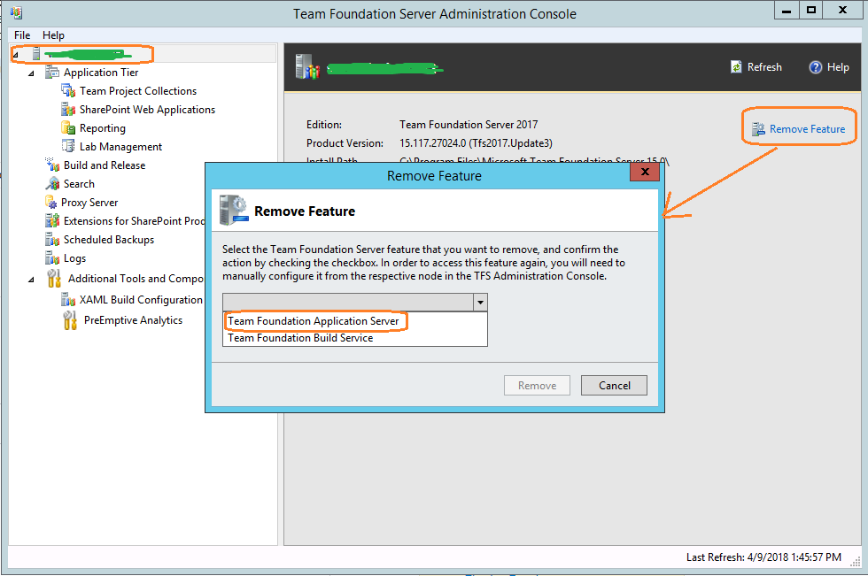 您可以将Application功能作为下面的屏幕快照删除,然后重新配置它: