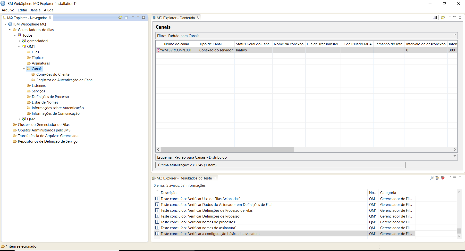Caused by: com.ibm.mq.jmqi.JmqiException: CC=2;RC=2540;AMQ9204: Conexão com o host 'localhost(1414)' rejeitada. [1=com.ibm.mq.jmqi.JmqiException[CC=2;RC=2540;AMQ9520: Canal não definido remotamente. [3=WM.SVRCONN.001 ]],3=localhost(1414),5=RemoteConnection.analyseErrorSegment]