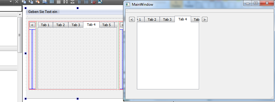 如果您希望QPushButton或QToolButton在QTabBar中,您可以通过子类paintEvent来对其进行归档。为此,将QPushButton或QToolButton设置为QTabBar父级,并将x-坐标添加到QPushButton大小,这样它们就不会重叠。(屏幕截图中的按钮不是父级的。)