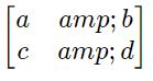 <span class='math'>\begin{bmatrix}a & b \\c & d\end{bmatrix}</span>在脚本标记中,我应用以下内容: