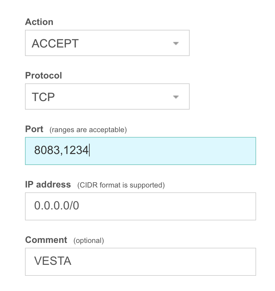 sed -i‘s/8083;/’/usr/local/ vesta /nginx/conf/nginx.conf &v防火墙-规则接受0.0.0.0/01111 TCP & service vesta重新启动