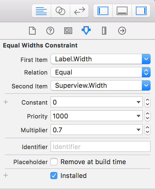 宽度= superview的70%,这意味着您的视图的乘数为0.7