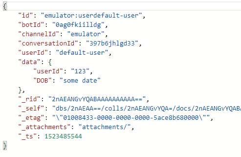 我已经使用Cosmos DB在我的BOT框架中启用了日志记录和状态mgmt,如下所示