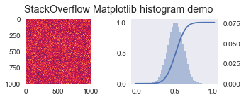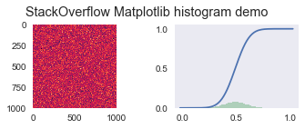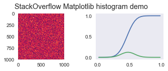 imagen2.suptitle('StackOverflow Matplotlib histogram demo')