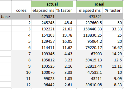 Console.WriteLine($"{DateTime.Now}: Core count: {i}, Elapsed: {elapsedMs}ms");