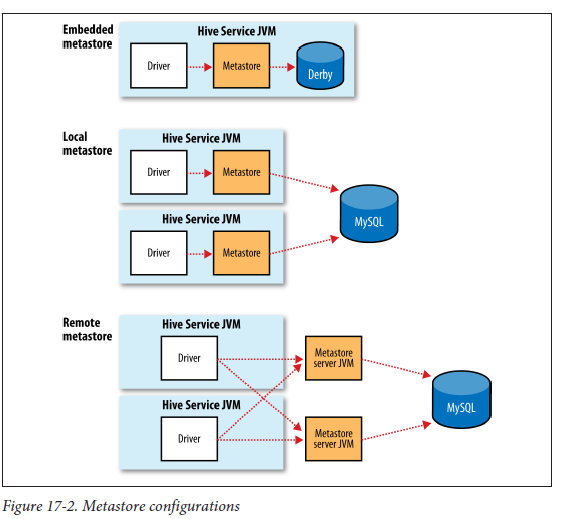 3) MetaStore是什么(我是,而不是指Metastore数据库的)。是某个进程在运行吗?如果是,这是hiveserver2的一部分吗?根据图表,MetaStore可以是远程的,所以如果这是一个JVM进程,那么它属于哪个组件?