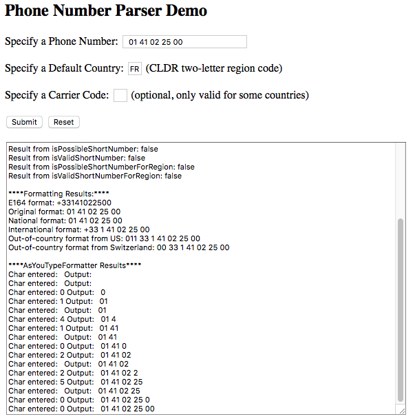 我可能错了,但根据wiki,法语数字的数字格式以"0“开头。因此,您的测试输入对LibPhoneNumber无效。France