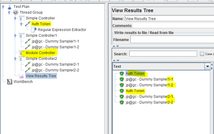 一旦您的线程到达模块控制器,它将重新执行Auth令牌请求,然后继续继续,如下所示。想一想,它不依赖于时间,但我认为这将满足您的要求。如果需要,可以在测试计划中的多个地方添加“模块控制器”。