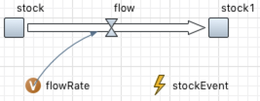 stock-(getEngine().getNextStepTime()-time())*0.1<0 ? 0 : 0.1getEngine().getNextStepTime()是下一次计算的时间,因此getEngine().getNextStepTime()-time()将告诉您下一次迭代的时间步骤(计算每个迭代的任意变化所使用的步骤的数值方法,因此您必须这样做)。我将时间步长乘以0.1,因为这是你选择的流量。流量从不为0.1,实际值为0.1*(时间步长)/(时间单位)。在这种情况下,时间单位是1秒,所以我除以1,所以我不需要把除法。该公式最后指出,如果下一次迭代将给出一个负值,则使流量等于0,而不是0.1