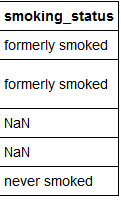 功能列(smoking_status)有3个以上的值以及许多NaN值--因为我的数据不是数字的,所以如何处理NaN值,如果是数值的话,我可以使用median或mean替换它。在我的情况下,如何替换NaN值?