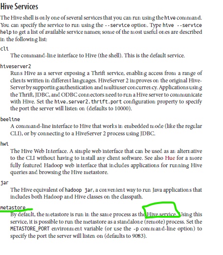 下面是Hive服务列表的片段(来自同一本书):